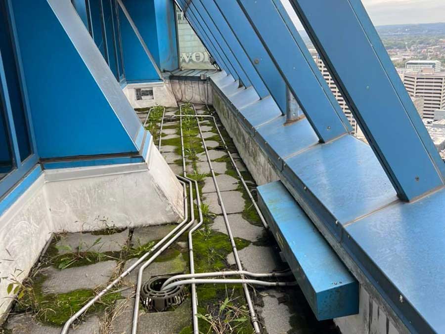 We had an awesome opportunity this week to clean Nashville's historic "Batman Building." The top of the building was covered with moss, mold, and mildew in the flat and shaded areas. Our team got to work and cleaned the top of the building up quite nicely.